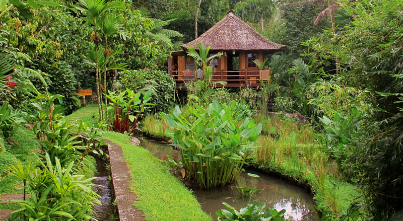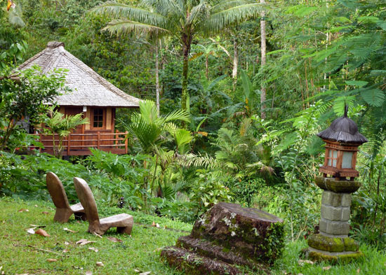 Bali Eco Stay is nestled on the southern slopes of Mt Batukaru in central Bali, Indonesia. Eight uniquely crafted bungalows blend into the mountain environment of the Eco Lodge. In addition, the bungalows use locally sourced materials and offer guests total privacy. The restaurant at the Eco Lodge uses fruits and vegetables from their own garden, produced via permaculture. Permaculture is sustainable and self-sufficient.